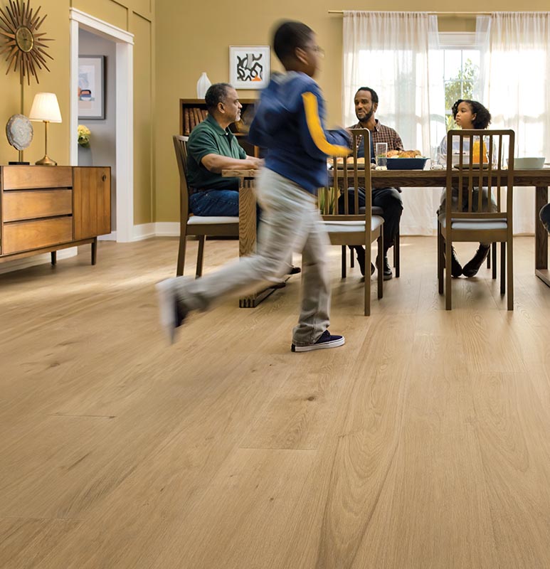 COLORTILE® NatureMark Hardwood features WetProtect® waterproof protection system technology. It features watertight joints, Hydroseal finish and watertight trims to ensure that no water gets through the top, joints or sides.