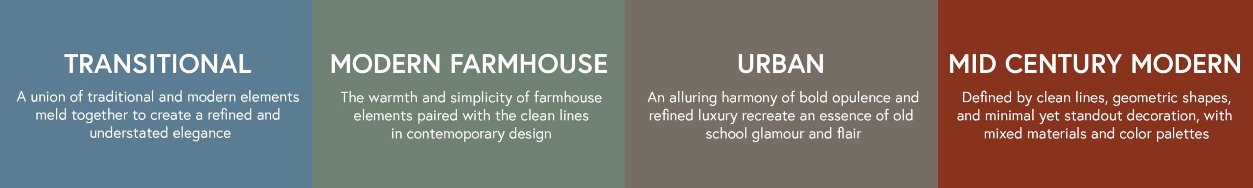 Our curated tile collections feature cohesive tile designs that are the right color, shape, and style and look perfect together! Choose from four collections of tile groupings curated by talented interior designers. They are Urban, Mid-Century Modern, Transitional and Modern Farmhouse. These collections feature options for every surface including floors, walls and accents in multiple design styles that will elevate any room.
